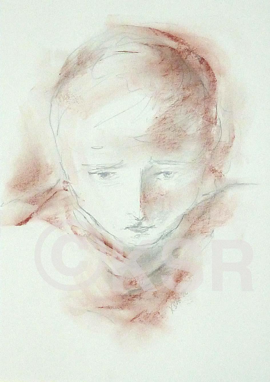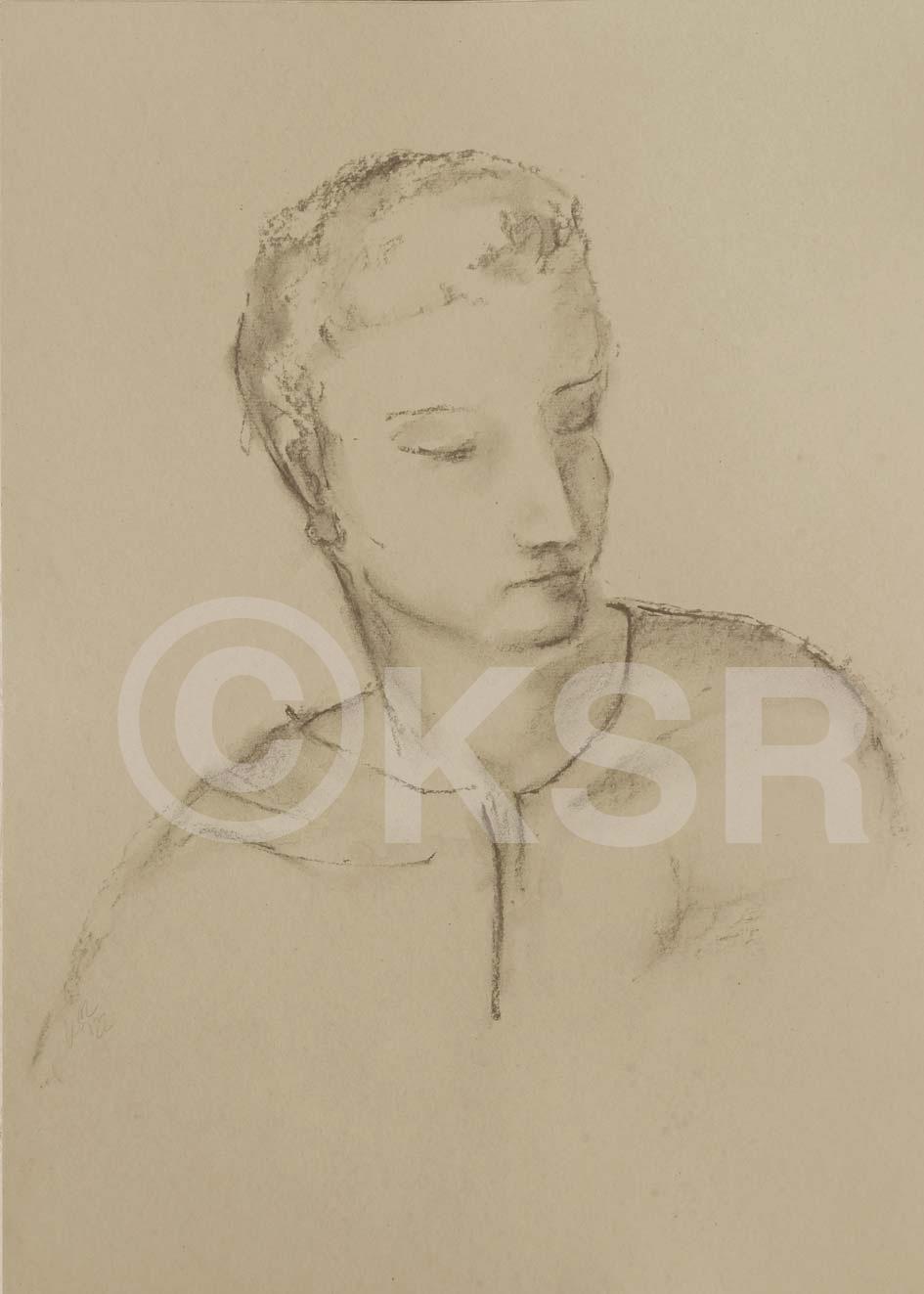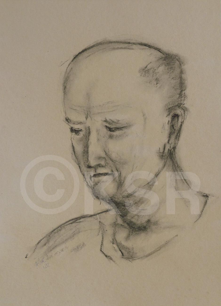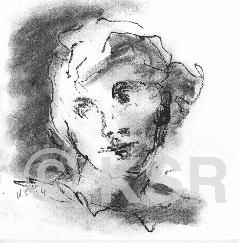 Kopf. 20x20 cm, Ölkreide und Kohle (2024)